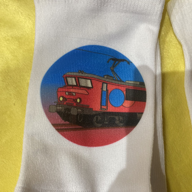 Chaussettes blanches avec impressions par sublimation réalisées à l'atelier (la position du dessin peut varier de quelques centimètres).