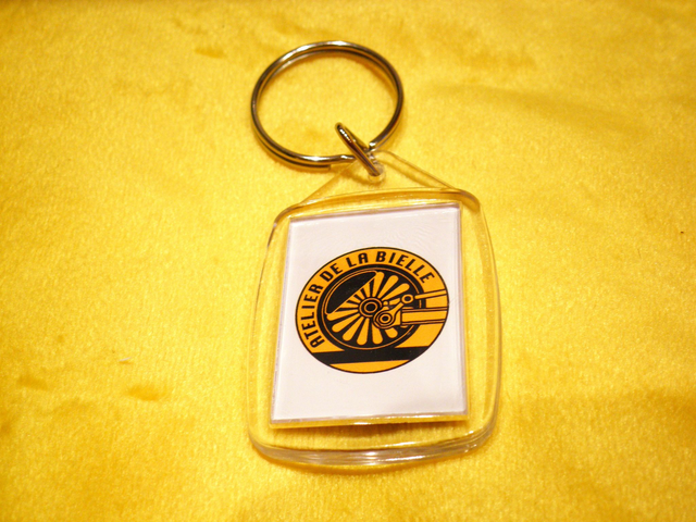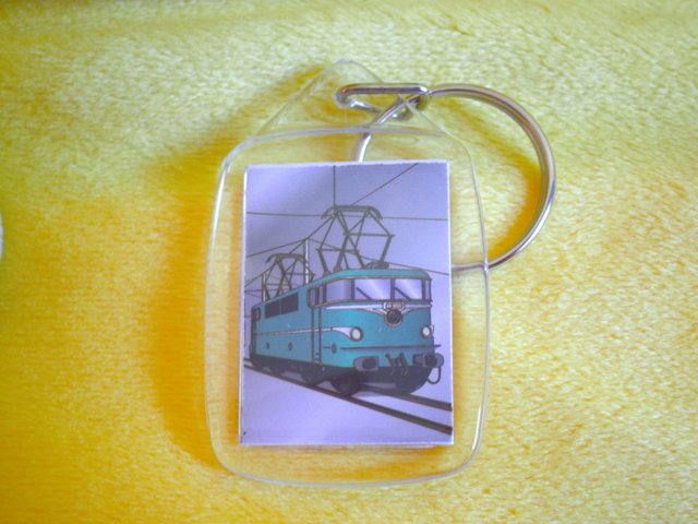 Porté clé en plastique locomotive BB 9200 verte avec logo de l'atelier de la bielle au dos.